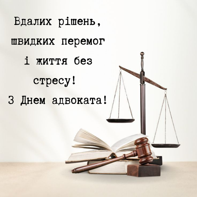 Любий адвокате, з святом! Нехай ваші знання допомагають людям, а життя дарує лише приємні сюрпризи поза судовою залою.