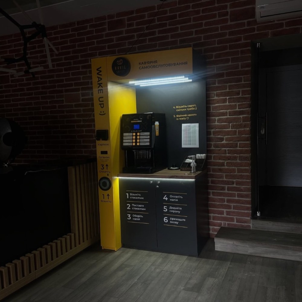 Компанія Kavil спеціалізується на встановленні кав’ярень самобслуговування, які працюють в автоматичному режимі та не потребують постійної присутності персоналу. Формат передбачає готові рішення, де більшість процесів уже налаштовані, що спрощує запуск і подальшу роботу.
