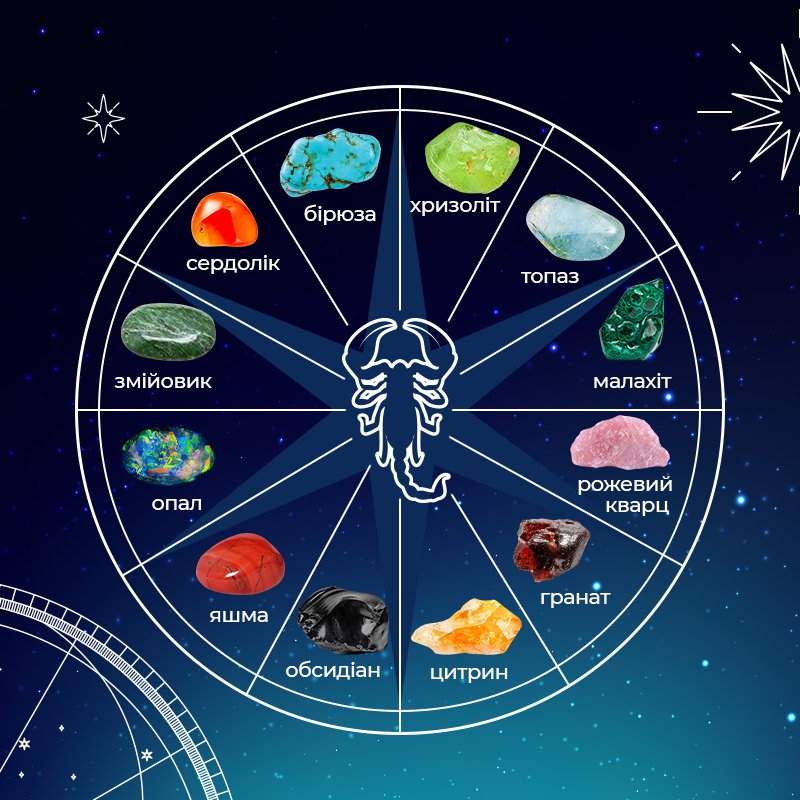 Для чоловіків-Скорпіонів підходять камені, які підтримують їхню силу та захищають від конфліктів.
